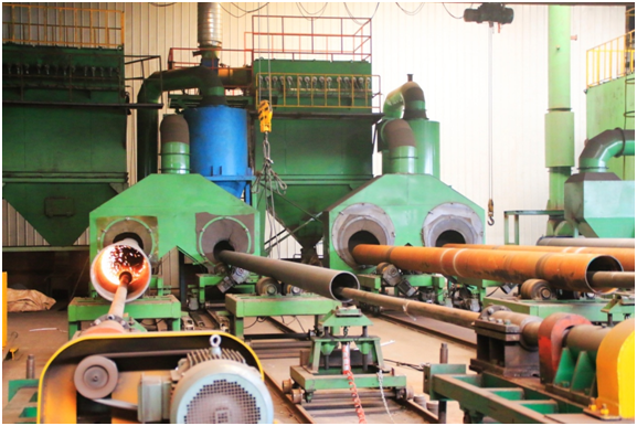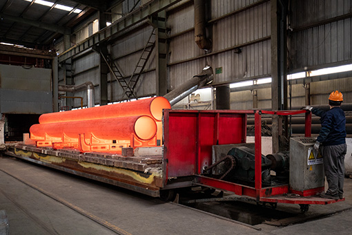 對于Φ273~Φ508無縫鋼管,采用帶坯委外加工方式,見單軋制原管,我司再自行完成熱處理、精整和后道工序;對于直徑>508mm,徑壁比>25(無法軋制)的大直徑薄壁無縫鋼管,委托天淮、誠德等企業(yè)穿孔定徑后,我司采用中頻熱擴工藝擴制,結合冷拔、熱處理、精整等能力最終完成成品。